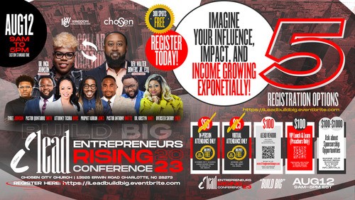 Kingdom World Changers Network and Chosen City Church have collaborated to host an iLead Entrepreneurs Rising Conference entitled "Build Big"! This ONE DAY CONFERENCE encompasses invaluable sessions, strategies, resources, and connections to help you grow your church, build your empire, and create generational wealth.